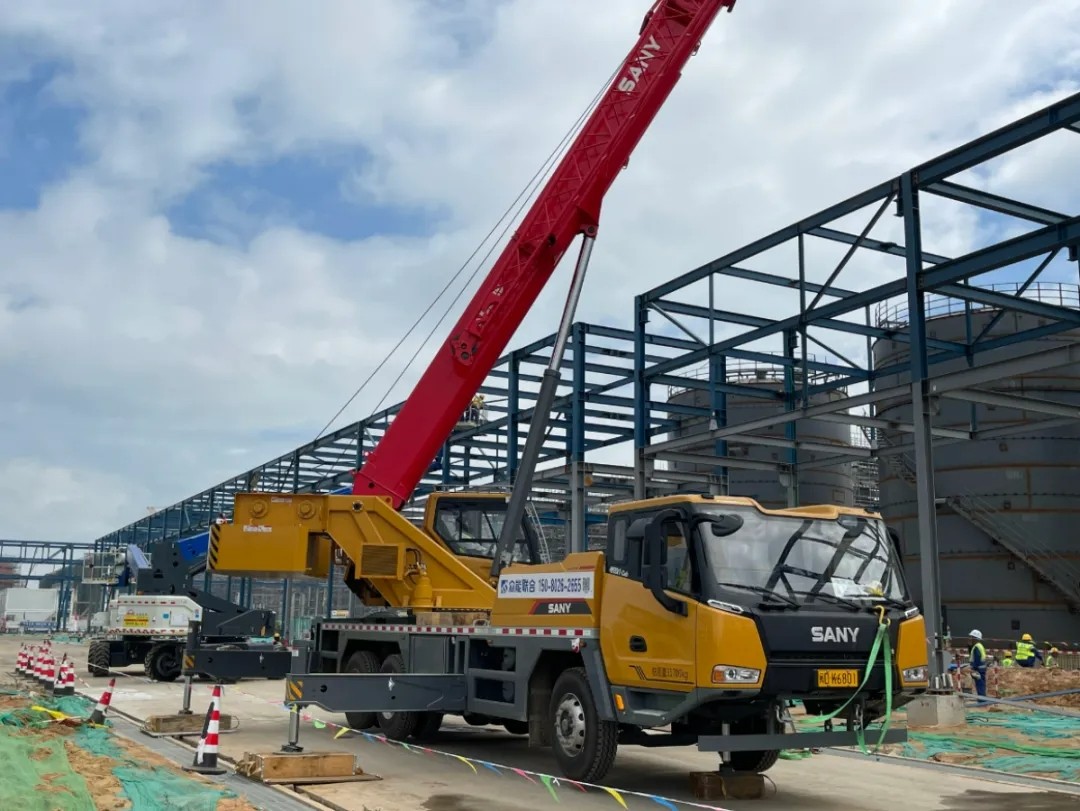 面对项目钢结构及装置安装的施工挑战,目前众能联合在此项目已提供超100台全新的专业设备,包括多台重型汽车式起重设备、履带式起重设备、高空作业设备等,搭配经验丰富的履约服务技术团队全程驻场。从全品类设备供给、安全解决方案、标准化履约管理,倾力为项目施工保驾护航高效。